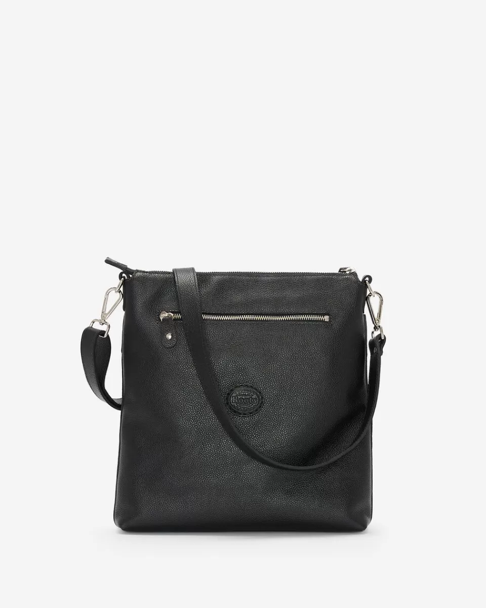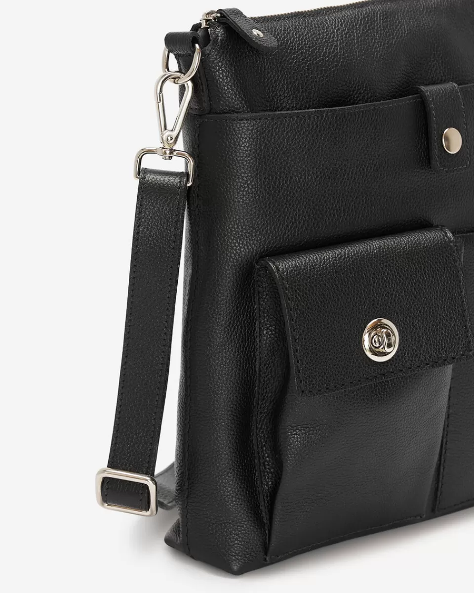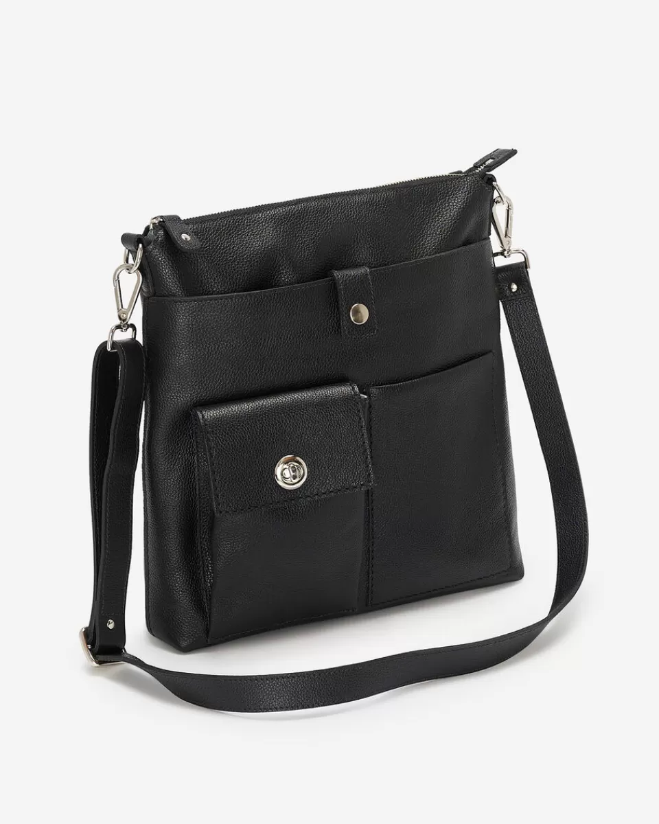 - Front slip pocket with snap tab closure